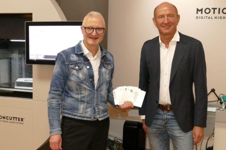 Fertig gerillte Grußkarten aus dem MotioncutterUwe Reimold präsentierte sich zusammen mit der Firma Tech-ni-Fold auf der drupa